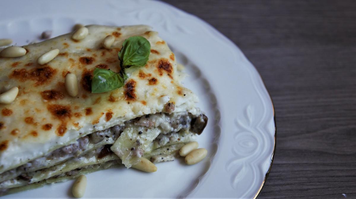 Cubrimos con la bechamel, añadimos por encima un poco más de parmesano rallado y lo gratinamos hasta que esté dorado.
