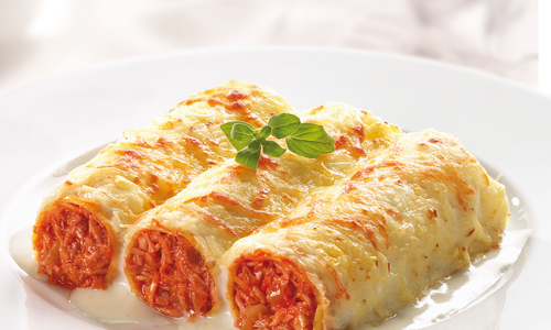 Los Canelones (del italiano cannelloni) es una pasta ancha de forma rectangular que se emplea a menudo en la cocina italiana para hacer platos con carne picada, verdura o incluso pescado en su interior, se suele enrollar formando un cilindro (de ahí proviene el nombre que en italiano significa "canalón"), a veces aparece la denominación: manicotti.Curiosamente no es en Italia donde más se consume este tipo de pasta. Los siglos de comercio y trato común entre Cataluña y el sur de Italia dieron como resultado un intercambio cultural y, en especial, gastronómico entre los territorios. Los canelones son un plato típico en Cataluña, tanto como puede ser la butifarra o el pan con tomate, en especial los de carne, como de Argentina y Uruguay.La invención (o perfeccionamiento) del canelón se atribuye al compositor Gioachino Rossini, de quien se dice que, además de tener muy buen gusto en su paladar, era un excelente cocinero. Los cannelloni alla Rossini originales eran rellenos de carne o pollo con foie gras, hongos o trufas y vino dulce o fortificado y salseados con bechamel, queso parmesano y ralladura de trufa.1 2 Actualmente existen diversas versiones de estos canelones, con rellenos con ricotta, jamón, carnes diversas o espinaca y salseados con salsa blanca y de tomate.