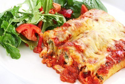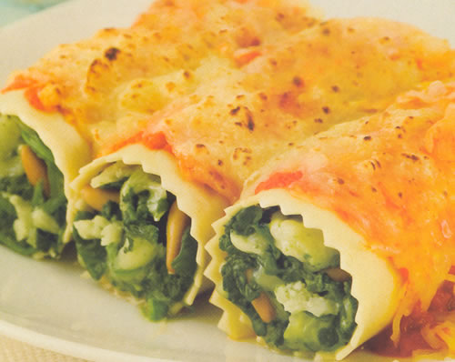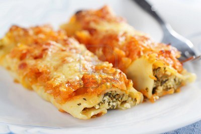 CANELONES CON RICOTTA Y ESPINACA EN SALSA DE TOMATE