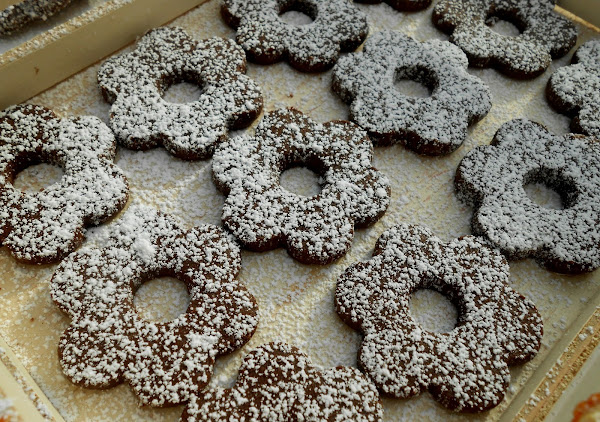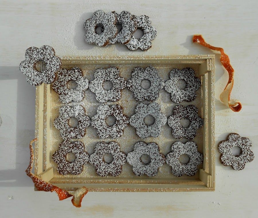La receta del libro es la de la zona de Piemonte donde se elaboran con almendras ( o sea que hay un error), pero Maggie nos informó que en Ligure se preparan con yema de huevo y nos dijo: "quién quiera hacer la versión del libro adelante y quién quiera hacer la versión de Ligure, adelante también, lo que sí va a misa es la forma que tienen..." Y yo respeté la forma de flor, aunque me tomé la licencia de hacerlas de chocolate y naranja... es que Maggie nos lo permite todoooooooo, ja, ja, ja.
