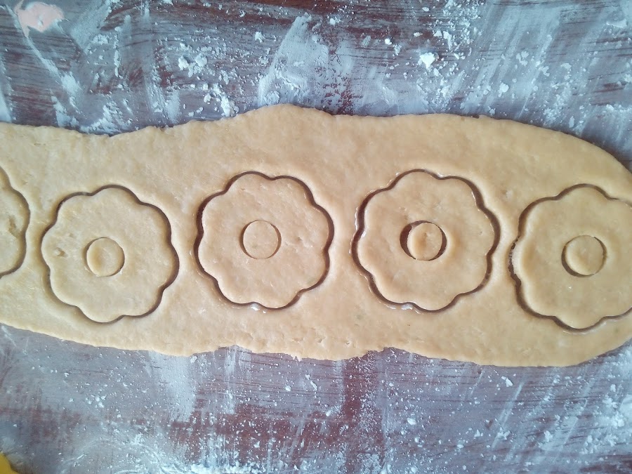 Pasado el tiempo, extendemos la masa con la ayuda de un rodillo, hasta que quede de medio cm de espesor y cortamos las flores de 3 o 4 cm de diámetro.