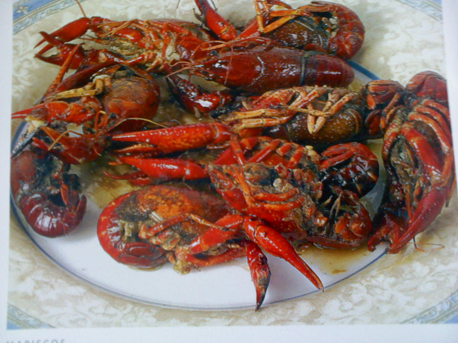1 kilo de cangrejos vivos de rió, 2 dientes de ajo, 2 limones, 1 guindilla un vaso de vino blanco,1 1/2 de aceite, y sal