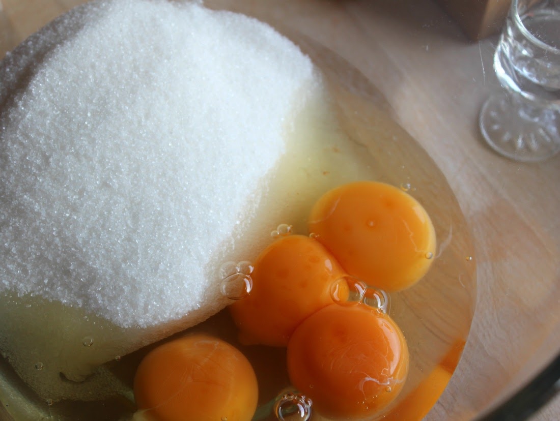 En un bol grande, mezclamos los huevos, con las yemas y el azúcar.