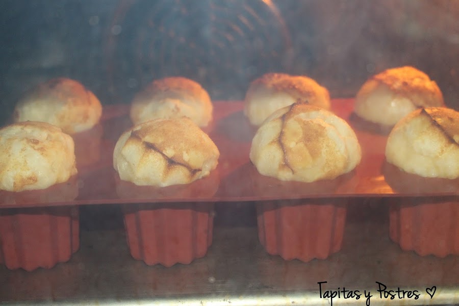Véis como subieron, parecían setas. Después bajan un poco, pero por eso es mejor no llenar los moldes.