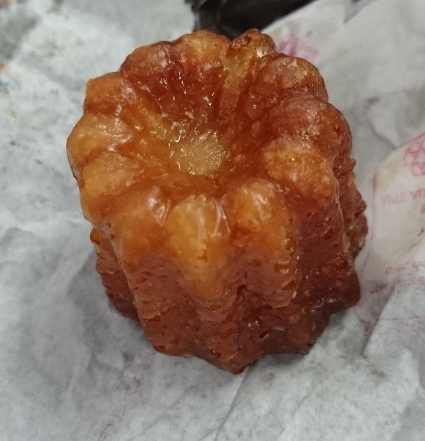 Y este es un auténtico cannelé francés, de hecho es el que yo me comí en París. ¿Veis como brilla? Dicen que es por la capa de cera que llevan los moldes, Quién sabe...