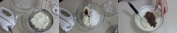 Escurrimos bien el requesón o la rocotta, lo dejamos en un colador al menos 2 horas, mejor de un día para otro y lo mezclamos con el queso crema y el azúcar glas, la esencia de vainilla, hasta que se forme una crema homogénea, añadimos el chocolate rallado y lo dejamos en el frigorífico hasta que hagamos los cannoli.