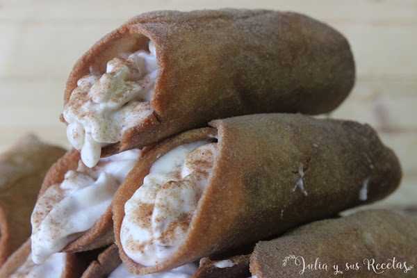 Los cannoli, es un dulce típico siciliano, básicamente significa "pequeño tubo", y que va relleno de una crema de varios ingredientes mezclados con queso ricotta. Pertenecen también a los llamados dulces de sartén, porque su masa exterior va frita en aceite.