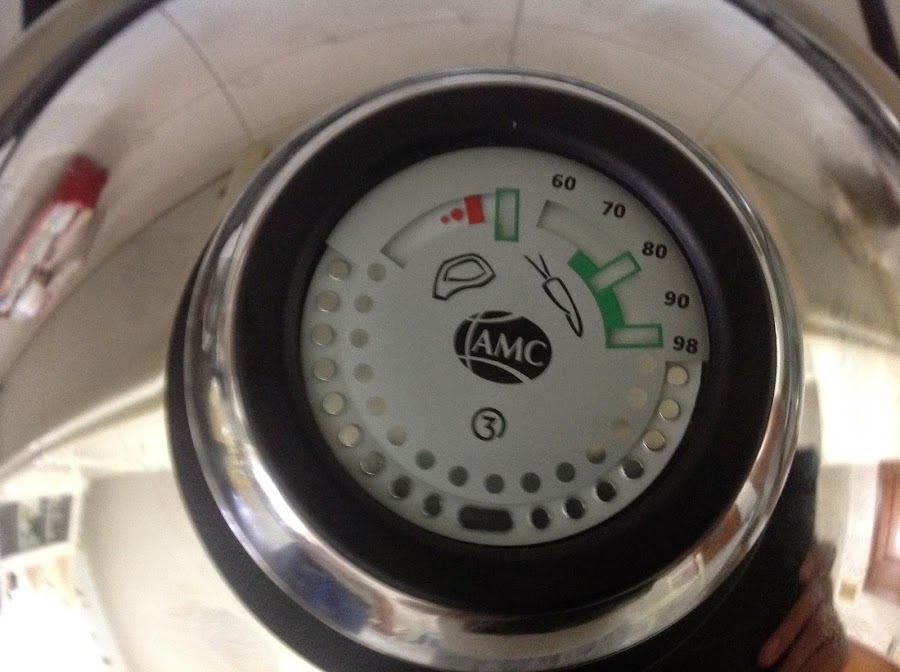 Mientras que enharinamos los cantones podemos poner la pieza a calentar con abundante aceite, con la sartén tapada esperamos a que en el visiotherm la franja roja llegue a la figura del "chuletón" para comenzar a freír nuestra berenjena. incorporamos la berenjena y tapamos, cuando la franja roja llegue a 90 destapamos (secamos la parte interior de la tapadera), damos la vuelta y añadimos un poco de sal, volvemos a tapar y esperamos a que vuelva a subir al 98 y destapamos y ya estarán listas para sacar.