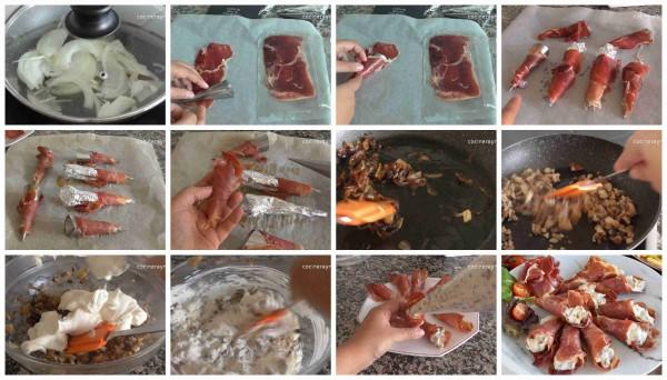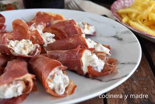 Vídeo receta; canutillos de jamón rellenos de crema de queso y setas: