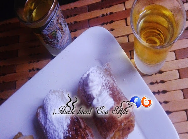 6.- Los espolvoreamos con azúcar glass y canela. También podemos poner un poco de nata montada (crema de leche). Ya están listos para comer. Los podemos servir, con un chupito de licor o acompañar con un buen café.