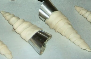 Empezamos haciendo los canutos. Para ello necesitaréis además de la plancha de hojaldre, unos moldes para la forma de los canutos.