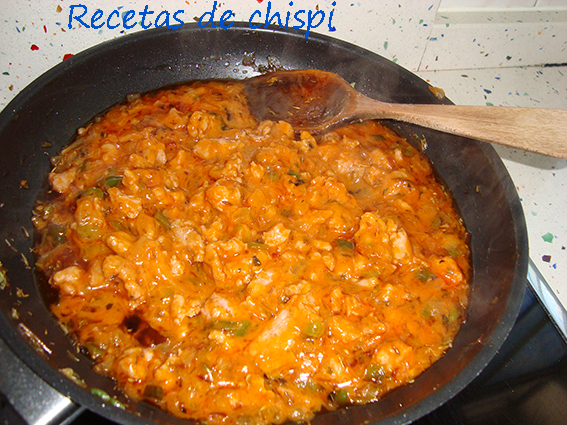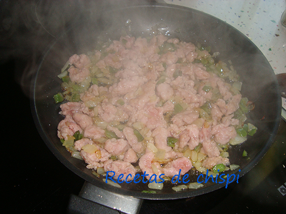 En una sartén con un poco de aceite pochar la cebolla y el pimiento picados.