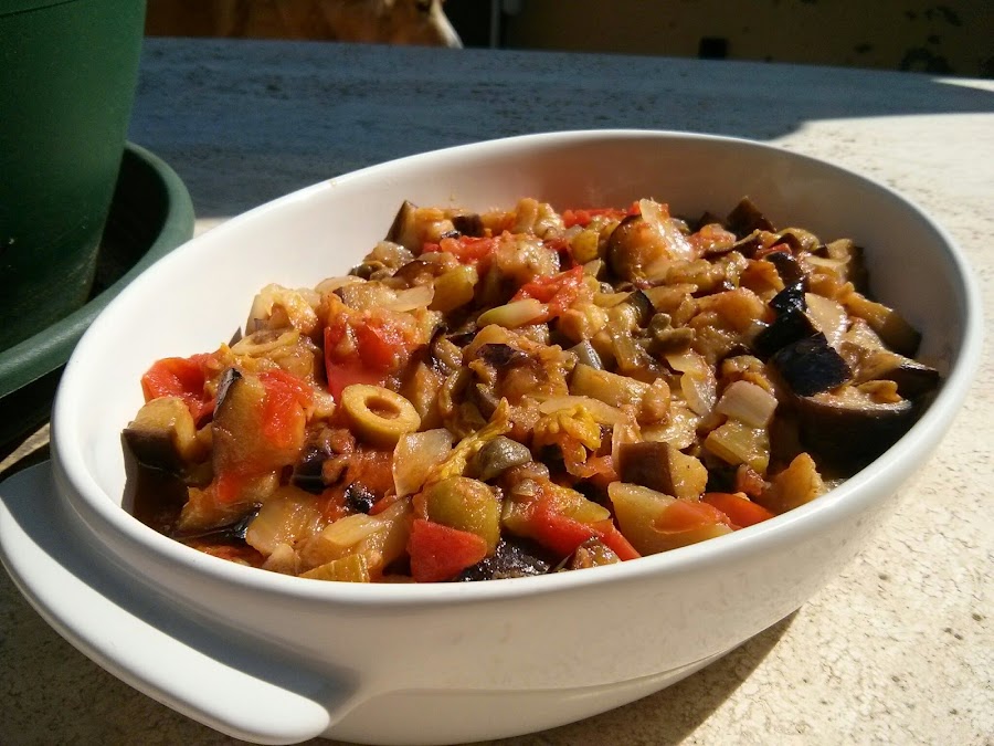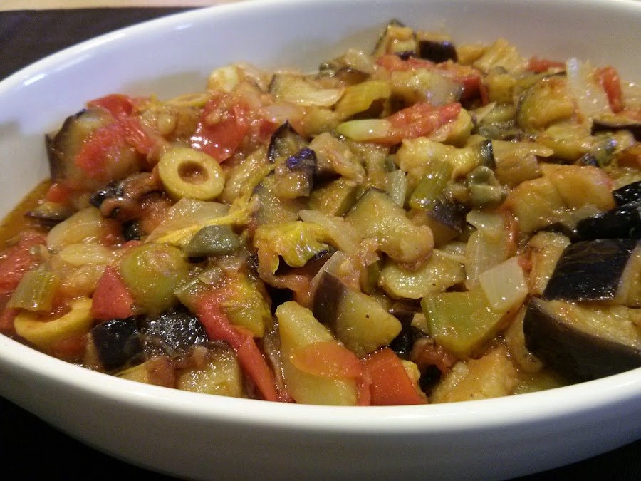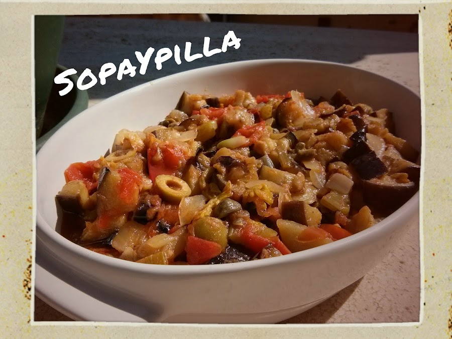 Pues hoy nos vamos a Sicilia, con este plato que tiene mil variantes y que he encontrado buenísimo. En casa lo tomamos frío, bueno, a temperatura ambiente, pero hay quien lo toma caliente o también frío de la nevera. Eso os lo dejo a gustos, yo probé esta versión y para mí ésta es la que se queda en casa..jeje ya veréis que es muy fácil de hacer, y es un tipo de receta de aprovechamiento, aunque las berenjenas no pueden faltar.