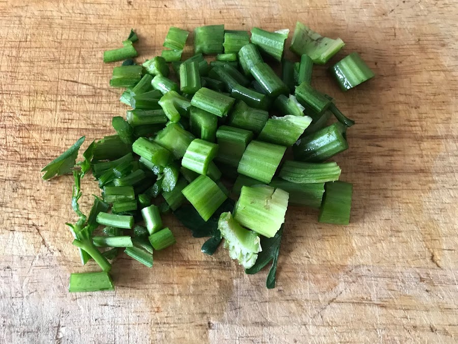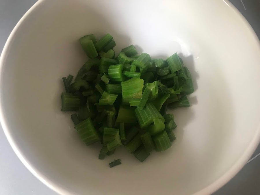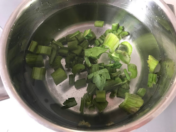 El siguiente paso es introducir los tallos de apio que ya teníamos reservado