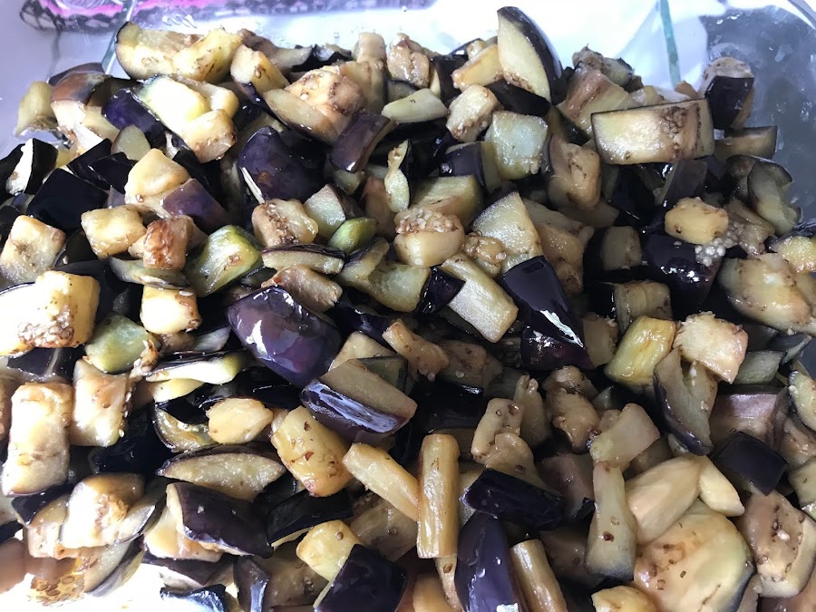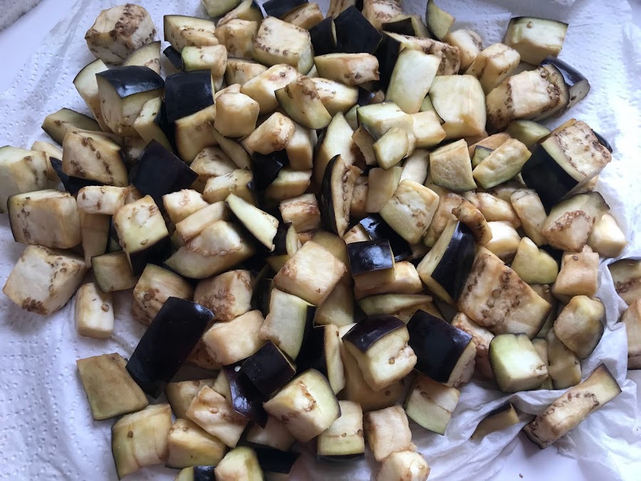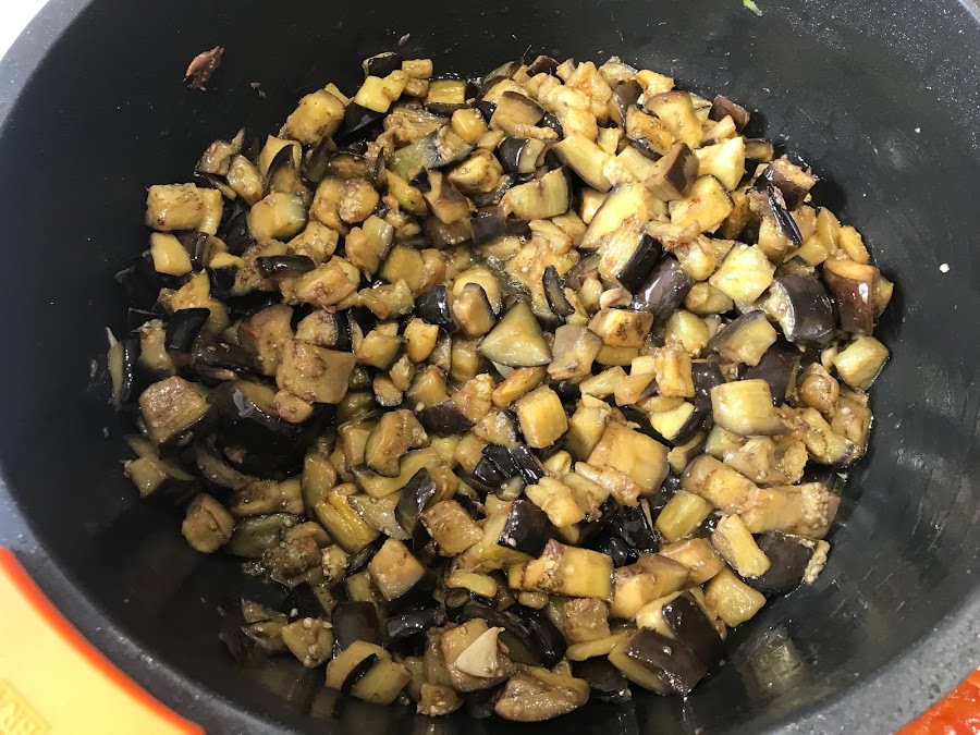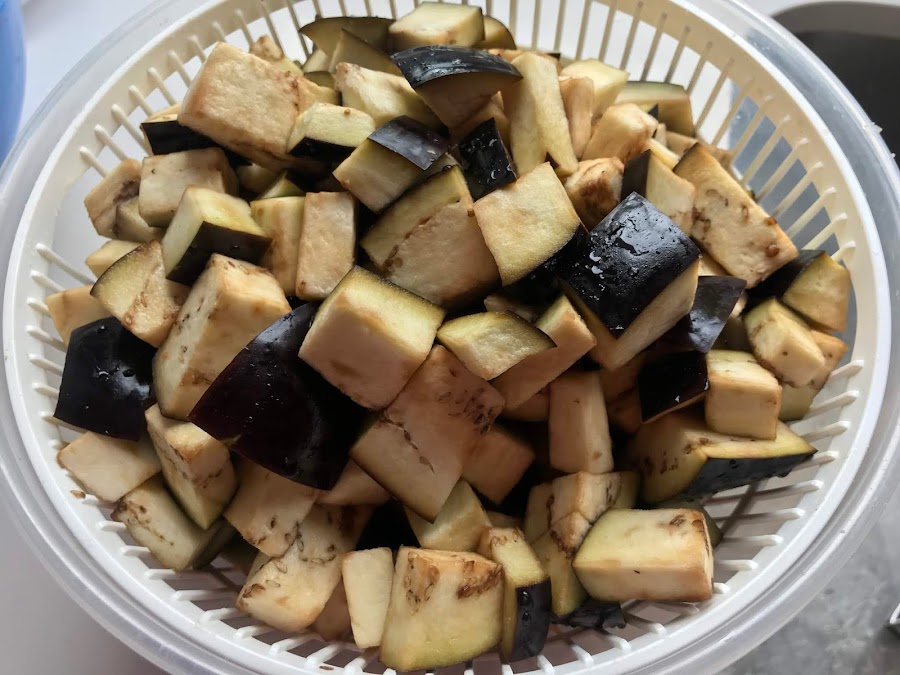 Aquí podemos observar la cantidad de agua que tira la berenjena, eso nos ayudará a que nuestro plato no quede nada amargo.
