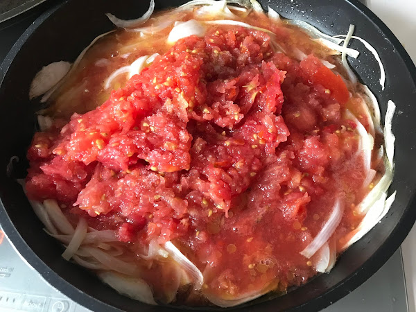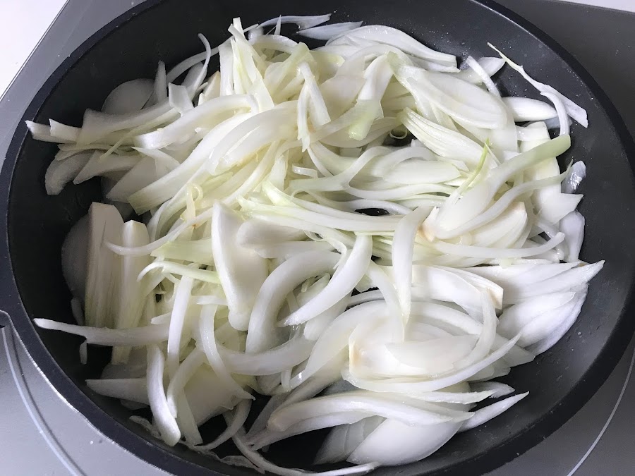 En una sartén ponemos a pochar la cebolla a potencia baja, 4-9