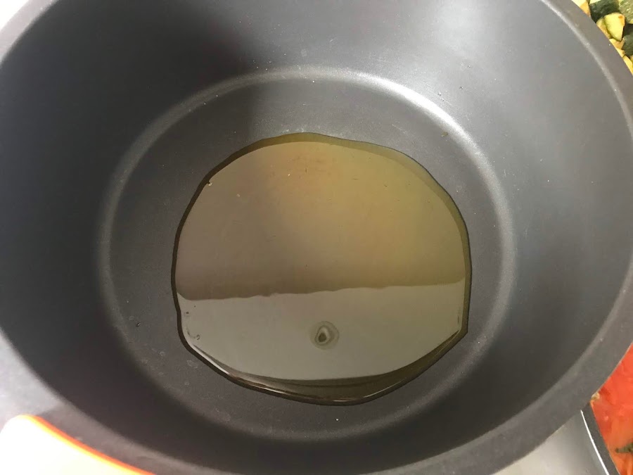 En una cazuela de fondo ancho ponemos una cucharada sopera de aceite de oliva.