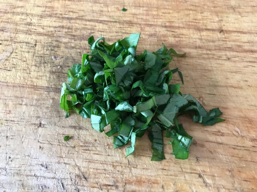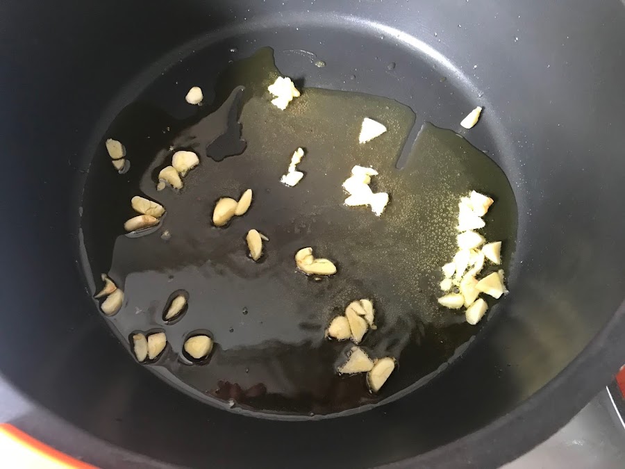 Cuando el aceite empieza a estar caliente ponemos los ajos picados