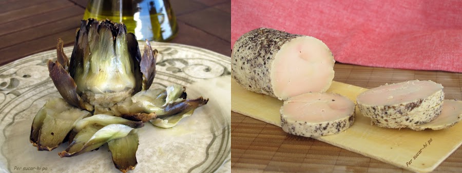 Vamos a rellenar los cappelletti con una pasta de alcachofas al horno y foie a la sal. Las alcachofas también pueden ser cocidas, pero hoy queremos jugar con el sabor característico de las asadas. El foie que hemos utilizado es una receta casera, pero podéis poner cualquiera que os guste de los muchos que ofrece el mercado.