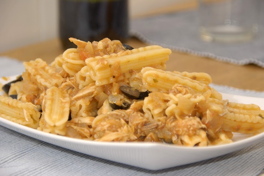Este plato está hecho con un atún en aceite de oliva casero que nos han regalado unos amigos y he de decir que está buenísimo. Para alguien como yo, procedente de la meseta castellana y que no está acostumbrada a las conservas caseras de pescado está impresionante y le ha dado un sabor completamente diferente al plato que si lo hubiera realizado con atún en conserva comercial.