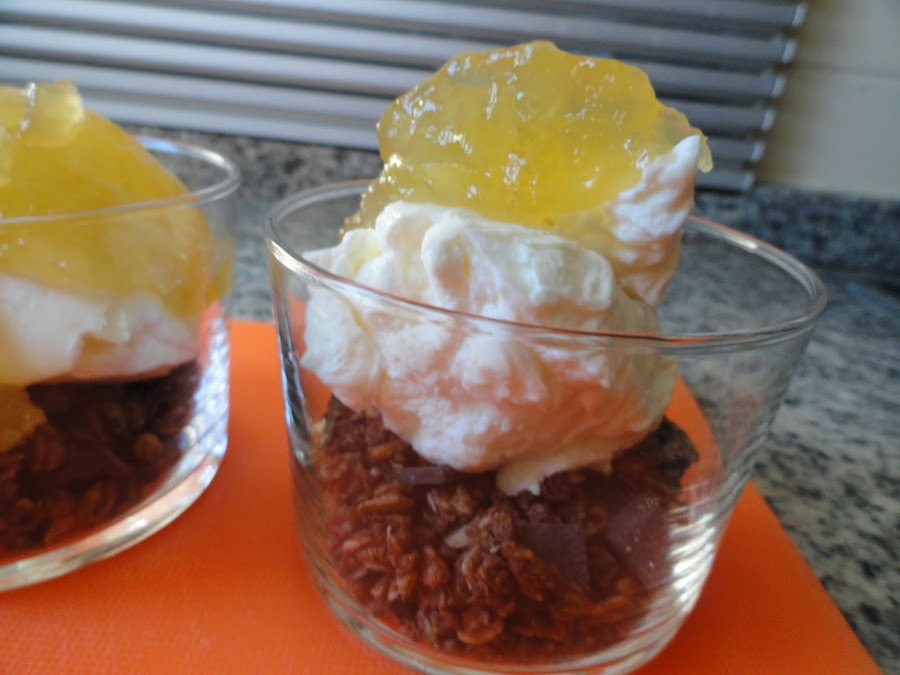 Con uno de los productos incluidos en la caja de este mes de muestras premium- la mermelada de melón- HERO, he preparado este postre, fácil, rápido y rico. Para dos vasitos necesitamos: