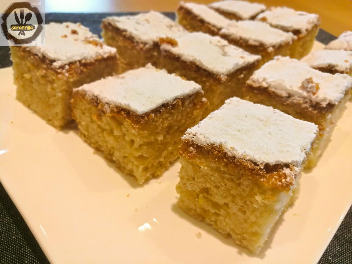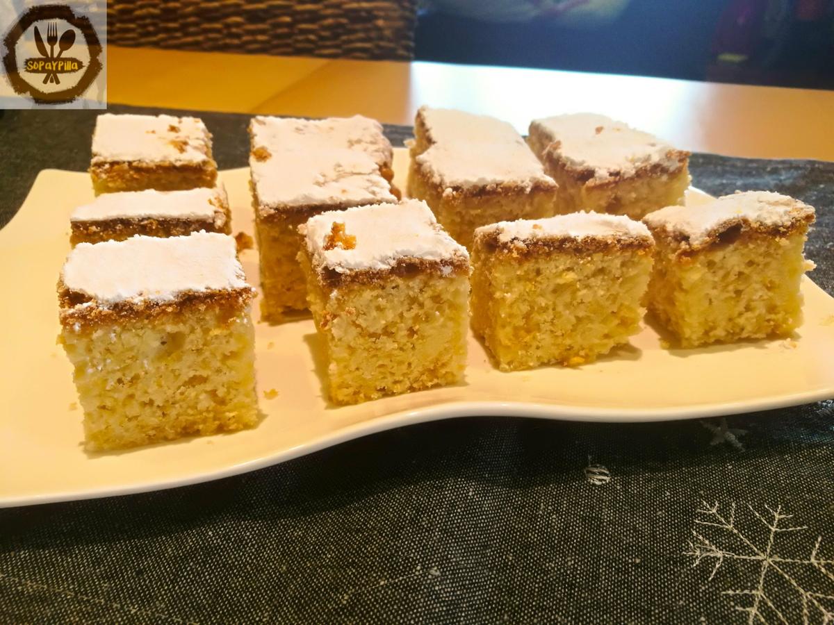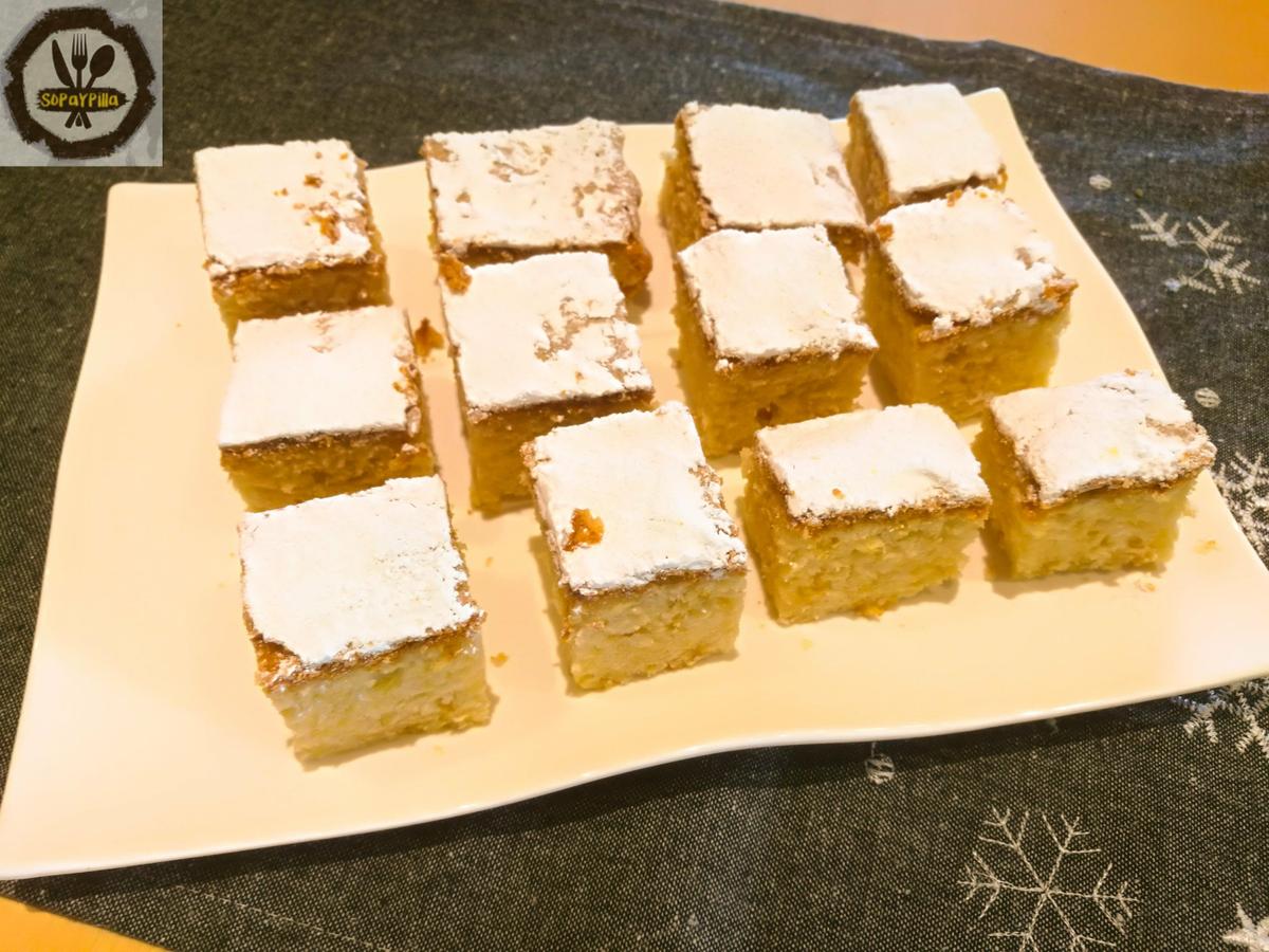 Dejamos enfriar completamente, lo espolvoreamos con el azúcar glass y cortamos en cuadraditos de bocado.