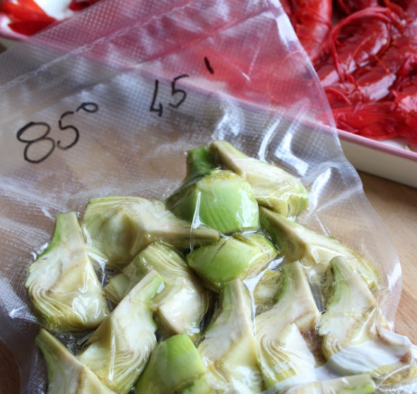 Pellizco de sal, aceite. Cerramos bolsa y cocinamos a 85º durante 45 min. (Te encantarán. Brutales)