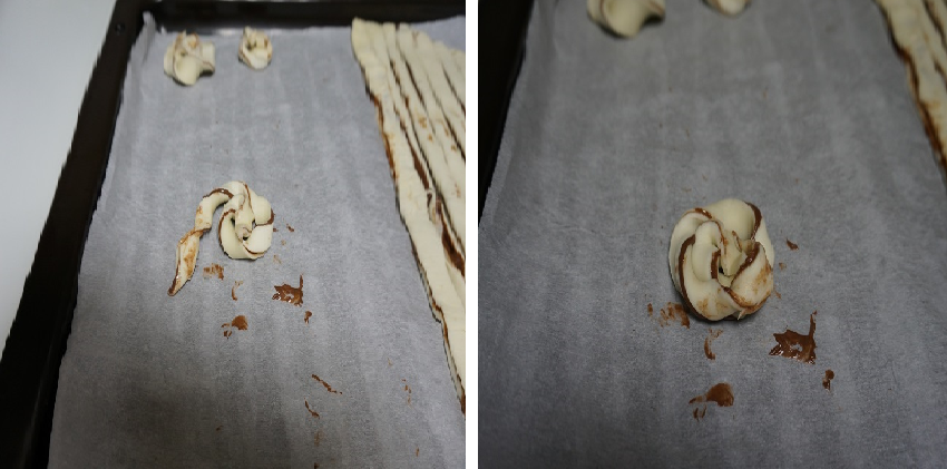 Cubrimos la masa que lleva el chocolate con la otra parte del hojaldre.