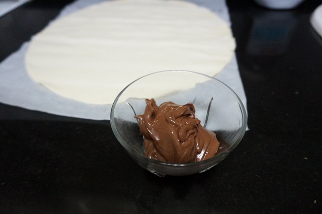 Encendemos el horno a 180ºC. Preparamos el hojaldre, cogemos la Nutella y la calentamos unos segundos al microondas para que quede más líquida para manejarla mejor.