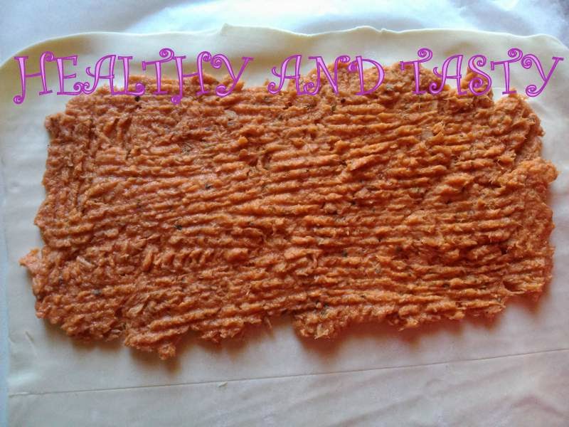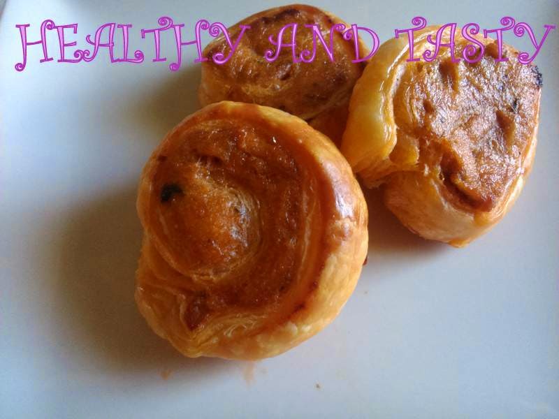 Metemos la bandeja al horno precalentado a 180º con calor arriba y abajo y dejamos que se haga el hojaldre y se dore un poco.