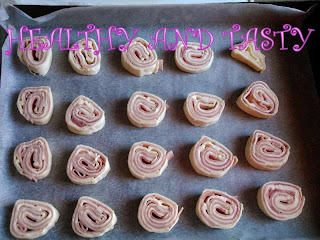 En cada mitad ponemos las lonchas de york y encima las de queso. Procurando dejar 1 cm de masa sin relleno para que al enrollarlo, no se salga el relleno.
