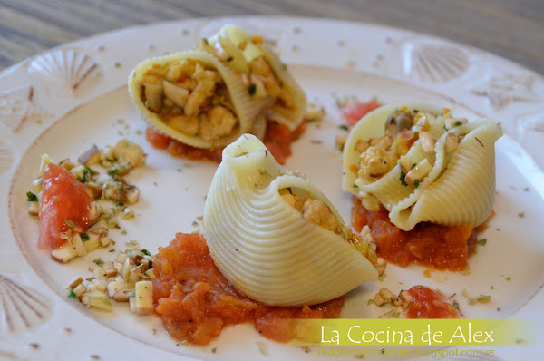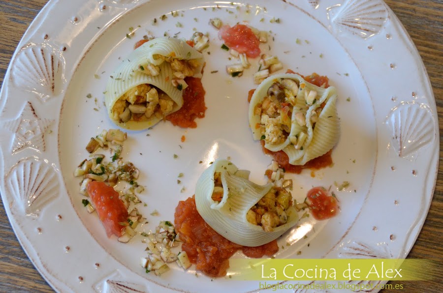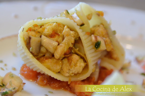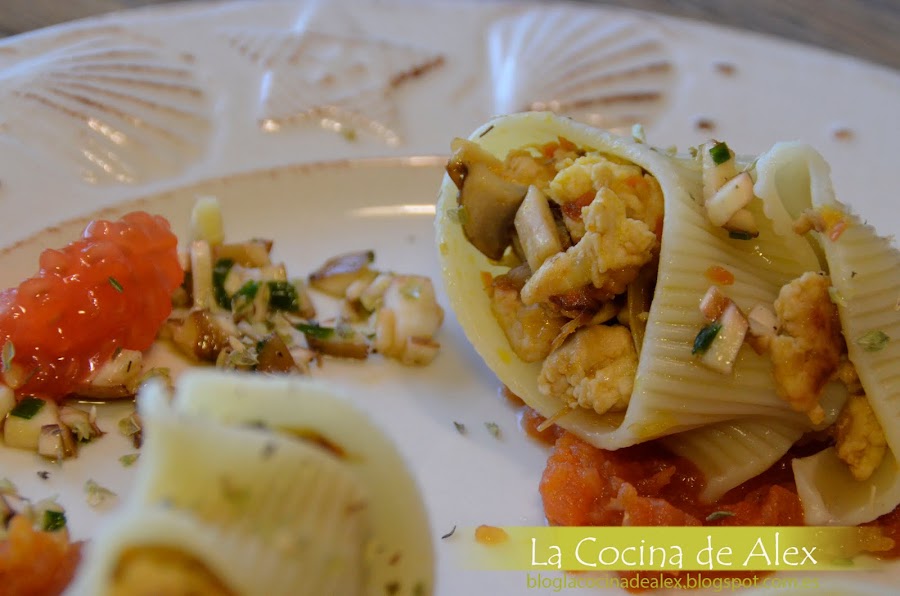 Hoy toca receta de pasta, este tipo de "caracolas" son un poco especiales que normalmente se usan para rellenarlas, nosotros os hacemos esta propuesta para hacer una presentación especial y muy original.