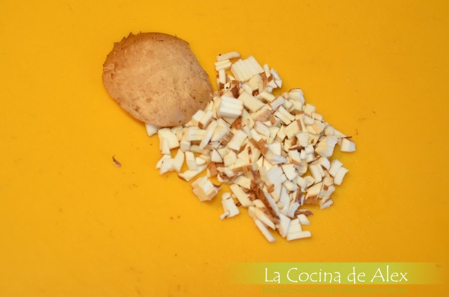Cuando vayáis a cortar los portobello, vamos a reservar la parte de arriba que la usaremos al final de la receta.