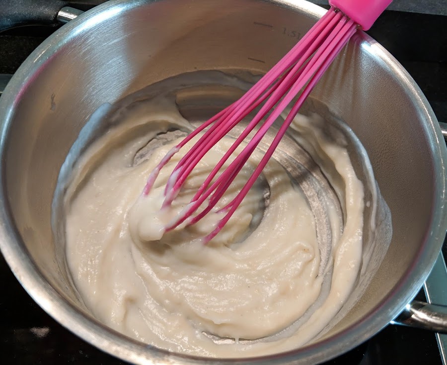 50 g de harina HTZ Calentamos sin que llegue a ebullición y dejamos que se haga una papilla fina y suave. Dejamos que se enfríe por completo. La HTZ tiene un 10,5% de proteína pero su calidad hace que se considere de fuerza media. Si no la encuentras usa una con un 11%