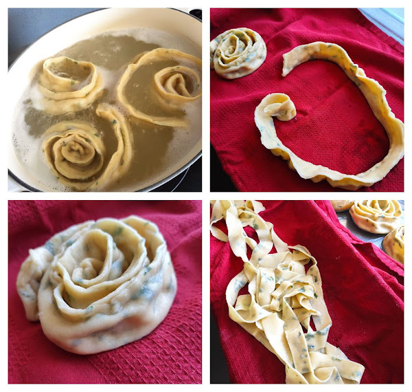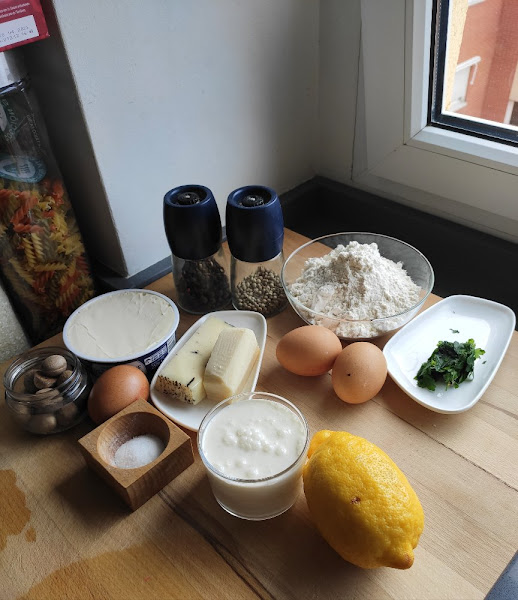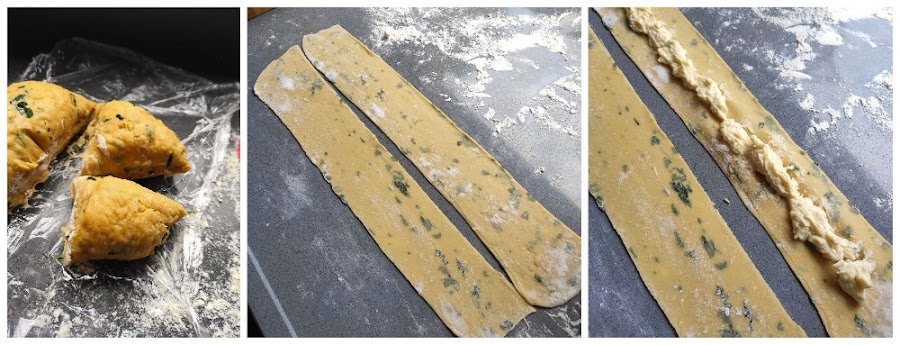 Mezclamos los ingredientes de la masa de pasta y los dejamos reposar en la nevera haciendo bola en papel film, unos 30 minutos.