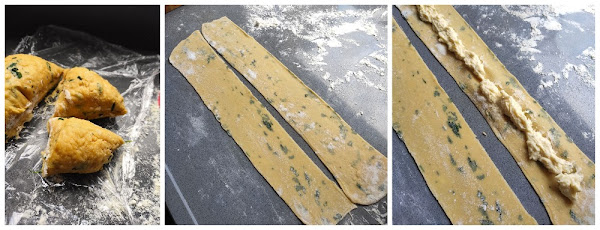 Vamos haciendo planchas y las dividimos por la mitad. (Yo utilicé la máquina y las trabajé hasta el grosor 6).