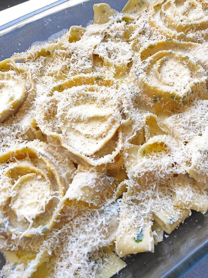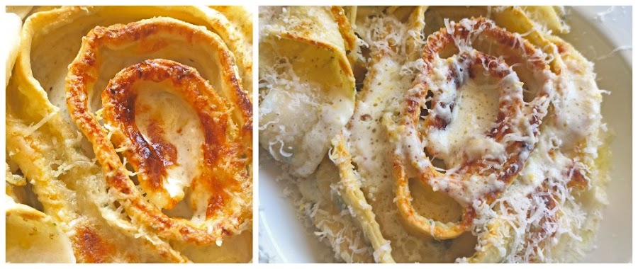 Salseamos las caracolas, parmesano rallado y ponemos a gratinar, hasta que se empiecen a tostar.