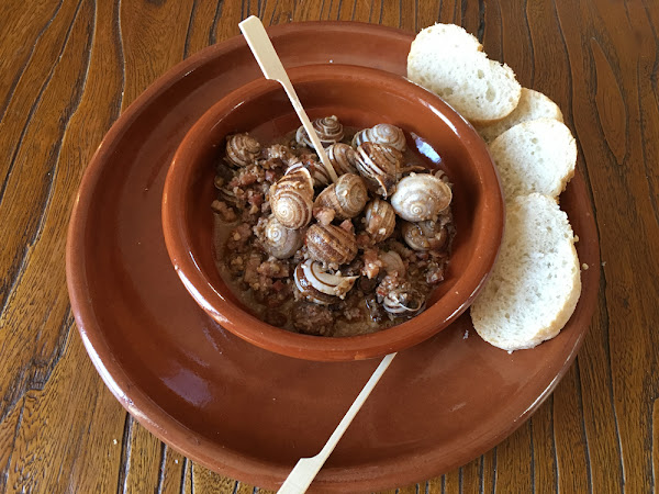 Escurrimos los caracoles y retiramos dos dientes de ajo de la cabeza que habíamos metido en el guiso.