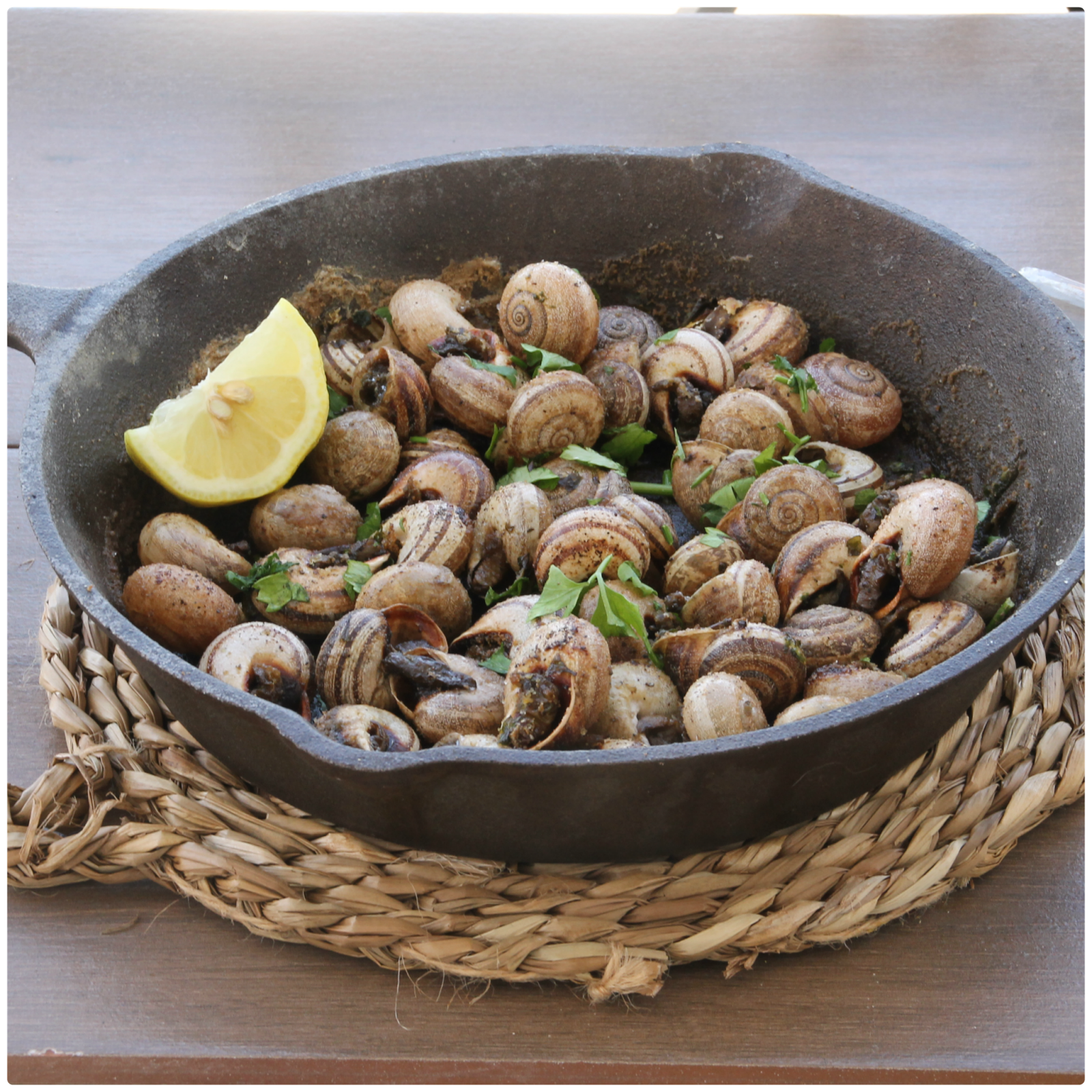 .Colocamos a un sartén todos boca arriba, echamos sal, pimienta, perejil picado, ajo en polvo por encima de los caracoles .