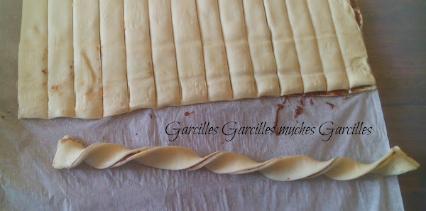 Cuando ya tengais las láminas cortadas en tiras, meterlas en la nevera 15 minutos, ir sacando, enrollando y colocando en la bandeja de horno