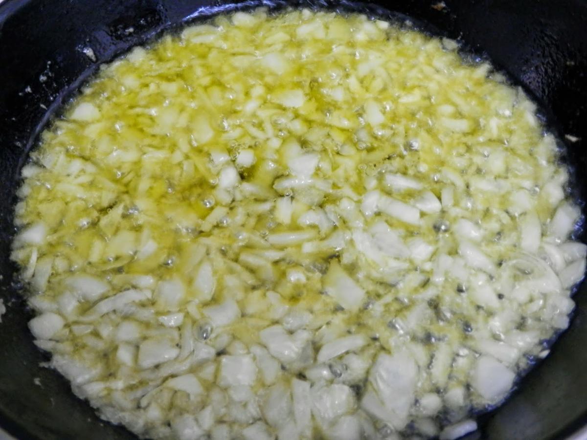 A continuación ponemos la cebolla picada en la sartén y dejamos que vaya sofriendo sin que coja color.