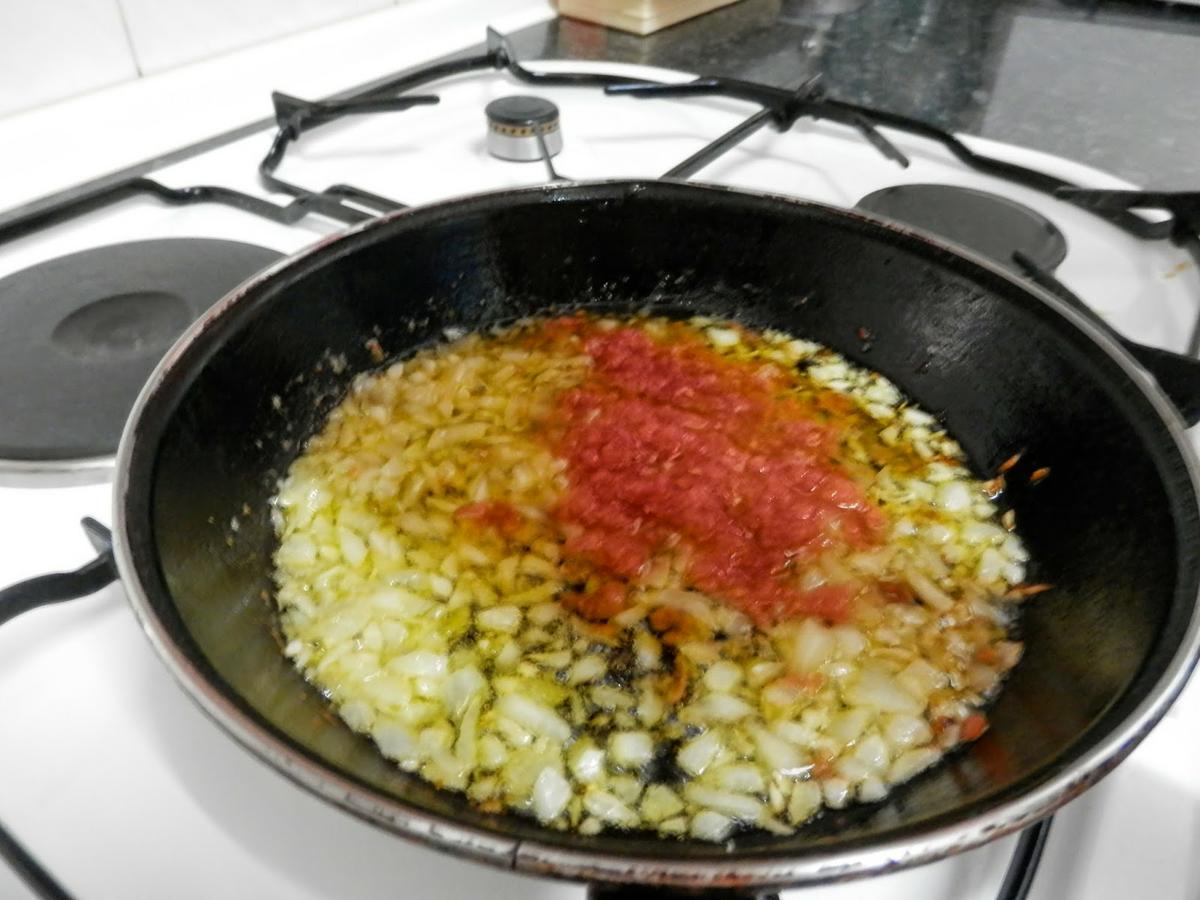 Ahora añadiremos el tomate rallado y un poco de sal y sofreímos bien.