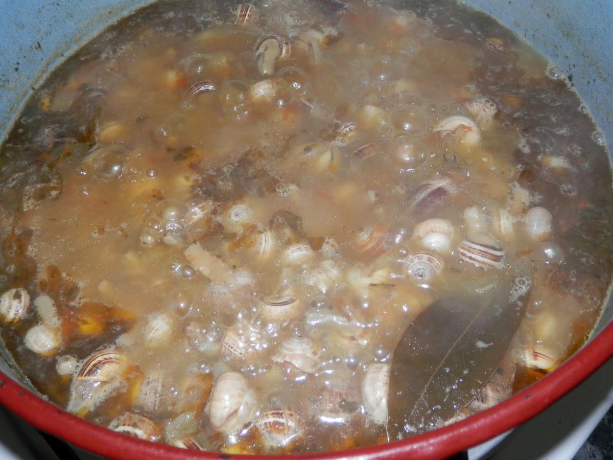 A la media hora que esté hirviendo, añadimos los caracoles.