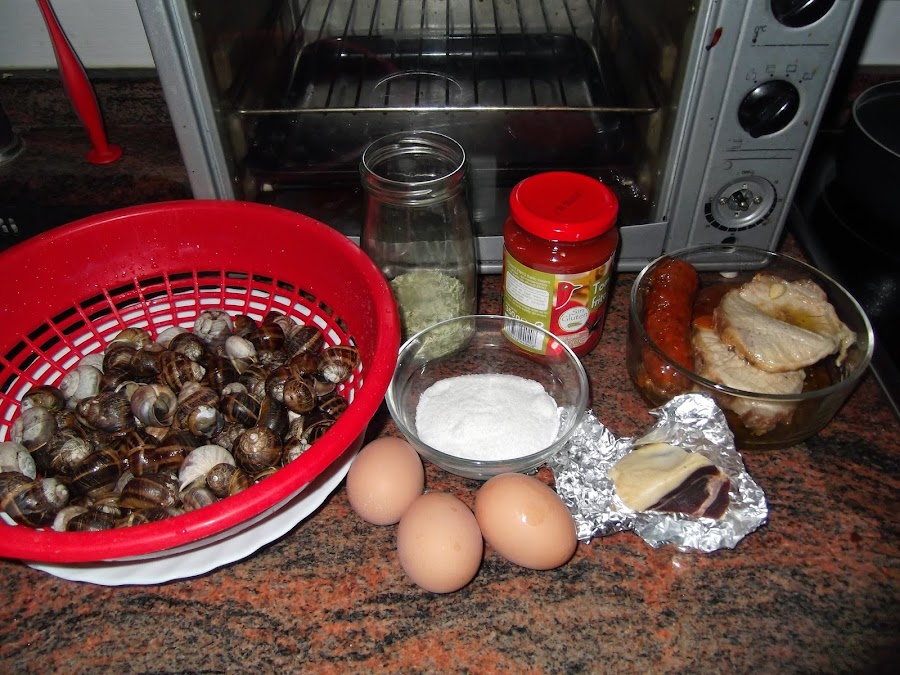 Lo más laborioso va a ser limpiar los caracoles. Como el pasado mes llovió un poco mandé a mi marido a coger caracoles y lo dejamos en una malla durante una semana para que cagarán y así se limpiarán.