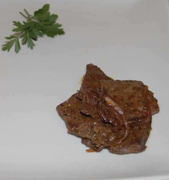 Cortamos los filetes de hígado en trozos, los ponemos en una fuente y echamos encima el resto del preparado anterior. Dejamos reposar y que se adobe bien la carne.