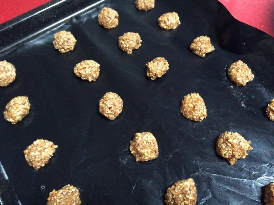 Con una cucharilla de té vamos tomando pedazos de masa tratado de que sean iguales. Con otras cucharilla nos ayudamos para colocar montocintos más o menos regulares sobre la bandeja de horno cubierta con papel de hornear.