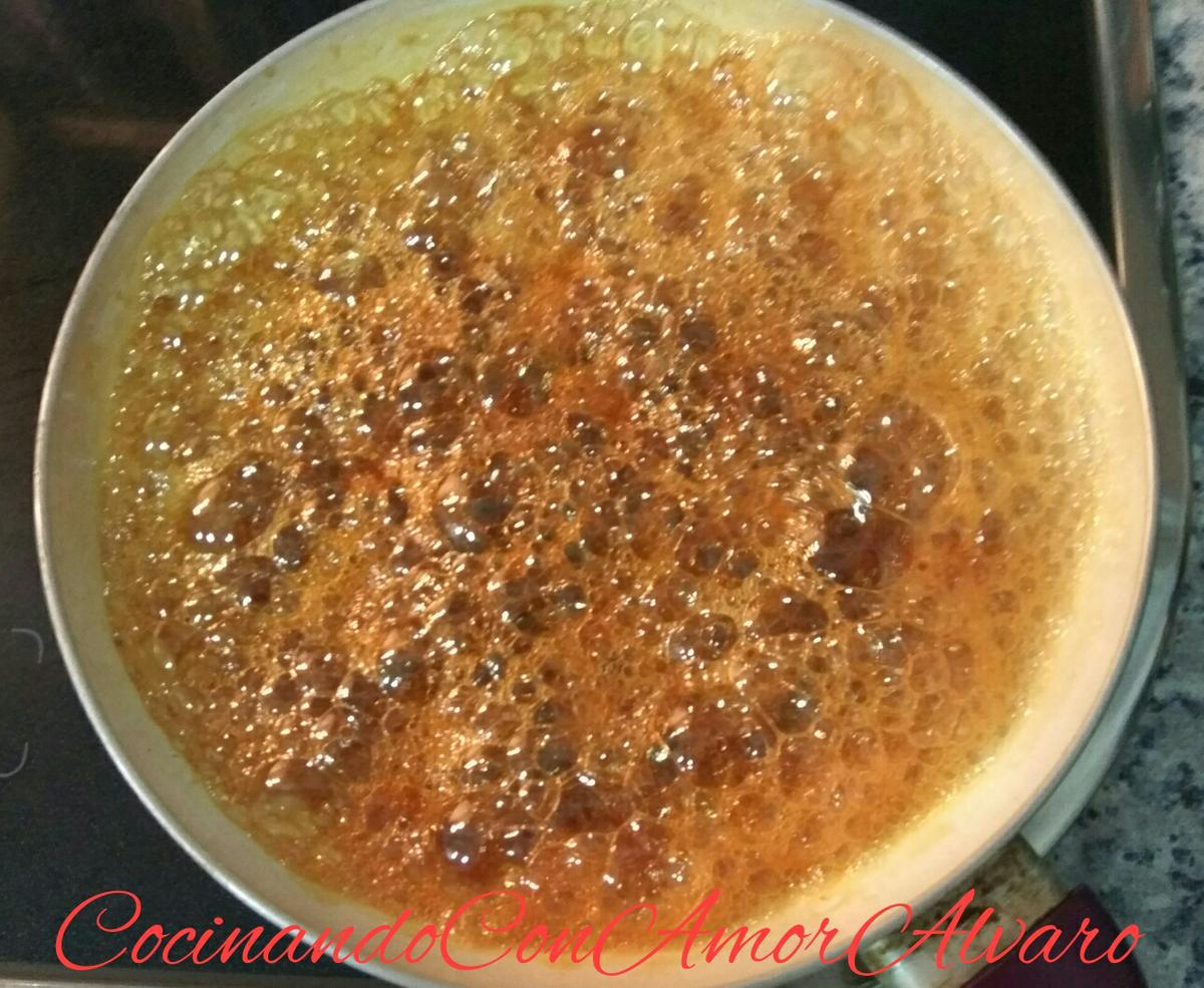 Ponemos al fuego, temperatura media sin remover durante la preparación. Ya que ello solo se irá haciendo, y veréis como va cogiendo color.