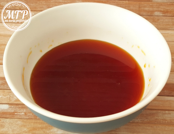 5- Cuando el caramelo tenga un color doradito oscuro estará listo, así que lo apartamos inmediatamente del fuego y le agregamos el resto de agua que nos queda y que os recuerdo que tiene que estar muy caliente, tened cuidado al añadir el agua porque el caramelo está muy caliente y os puede salpicar provocando alguna quemadura.