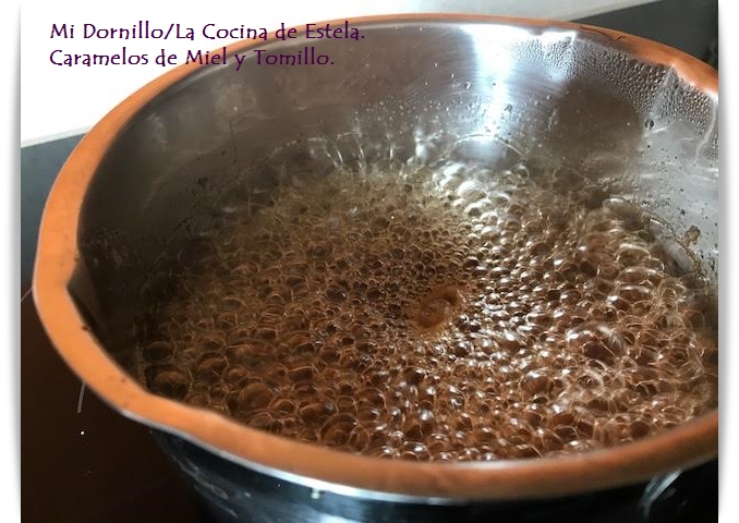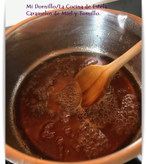 Seguimos moviendolo .Cuando empieza a espesar y a volver a salir espuma, si tenemos un termómetro de cocina debe llegar a unos 150º 0 160º. Si no tenemos, cogemos un vaso con agua fría y ponemos una gota con la ayuda de una cucharilla en el agua, si se solidifica es que esta. Se nota de todas formas cuando esta por el espesor semejante a cuando hacemos caramelo.