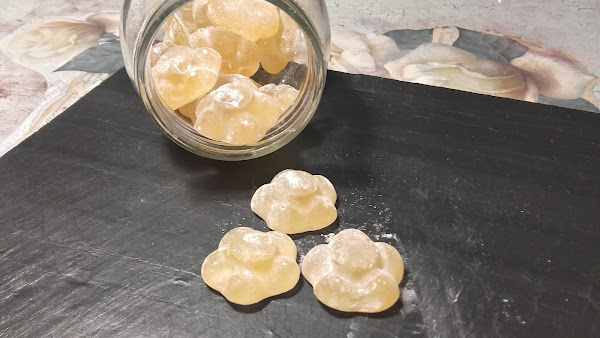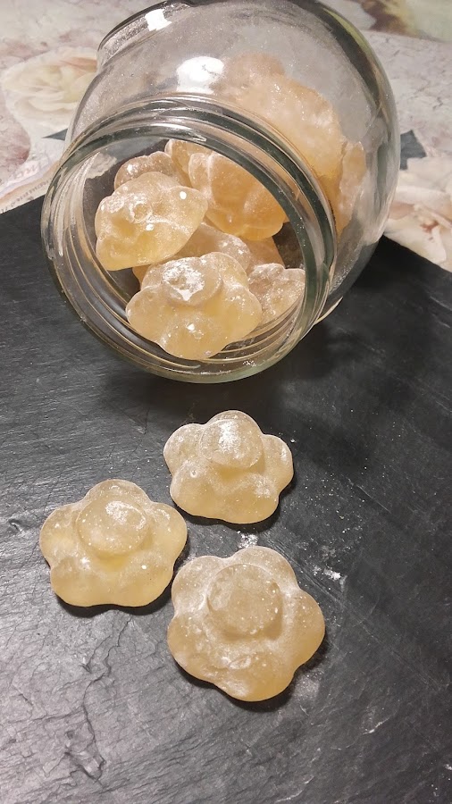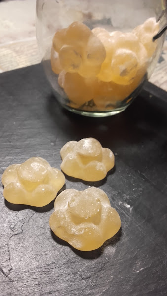 No me pude resistir.. una amiga puso en su muro un enlace de caramelos para la tos... y se me encendió la bombilla. No me convencía las cantidades y proceso de la receta, así que me la lleve a mi terreno.